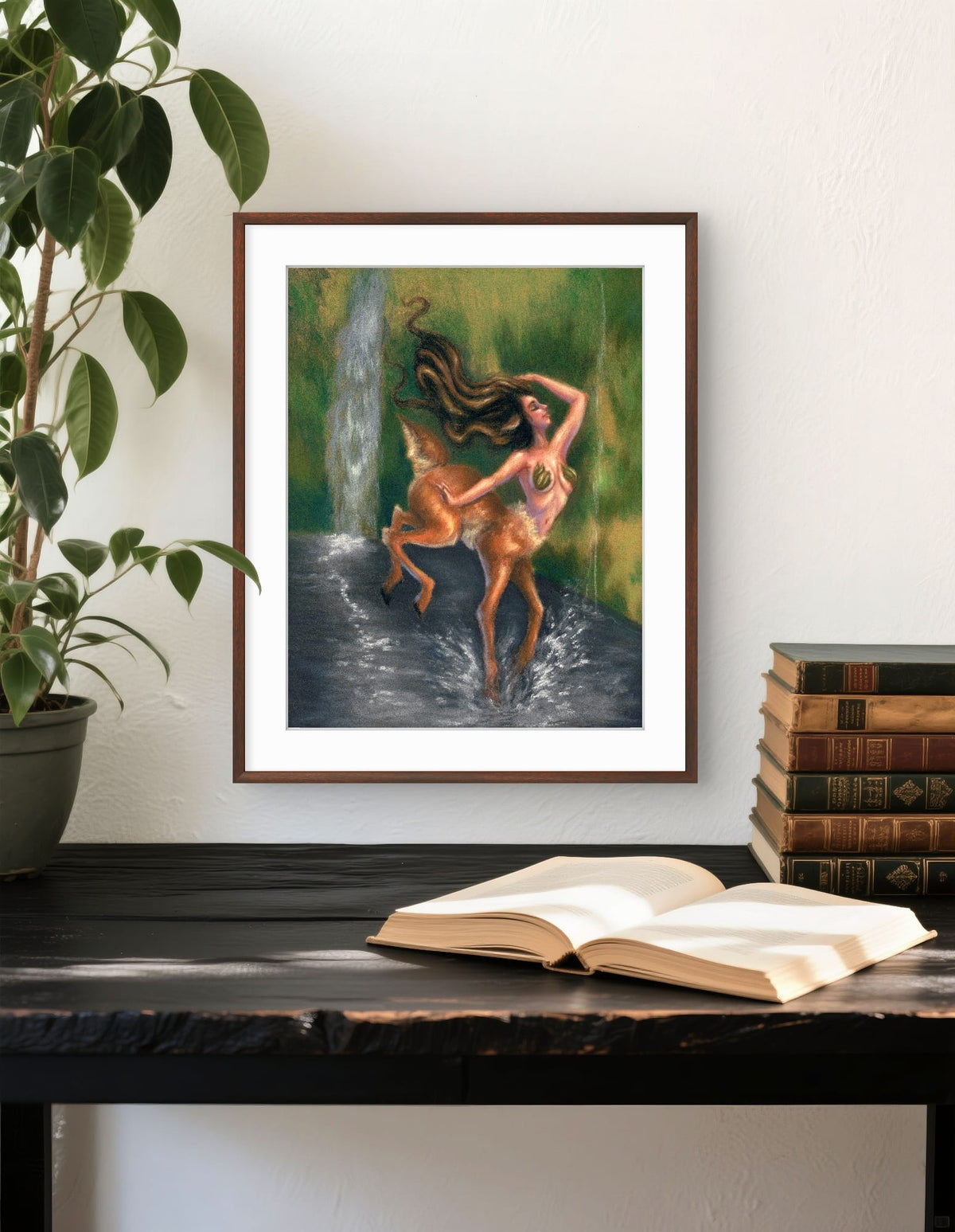 Bold, confident, and impossible to ignore, Velvet Stare is a digitally hand-painted tribute to vintage glamour and burlesque. Framed by a vibrant pink backdrop, her poised stance and gaze are irresistible.
